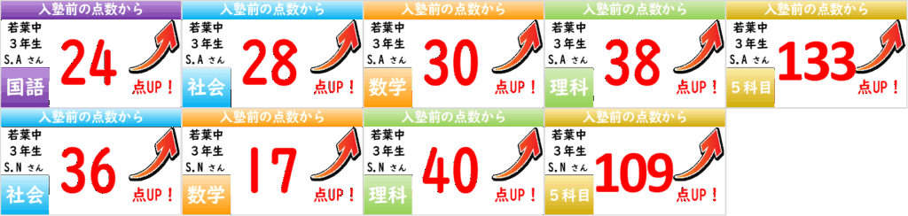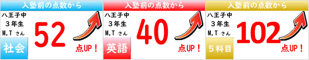 そこで、今回のブログでは1年生の途中から入塾して3年生の夏までいっしょに頑張ってきてくれた生徒たちの、入塾前と現状でどれくらい成績に変化があったかをお伝えしていきます。