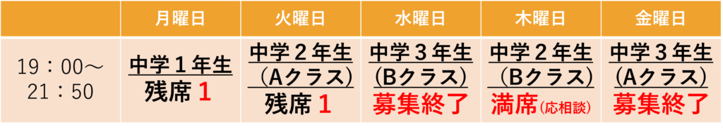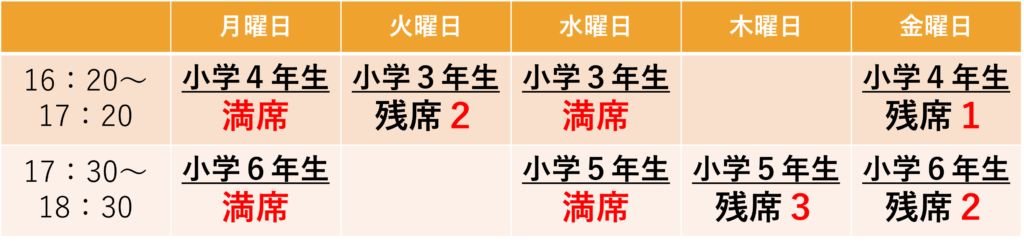 ※満席になった学年については講習会の募集も行わない予定となっております。