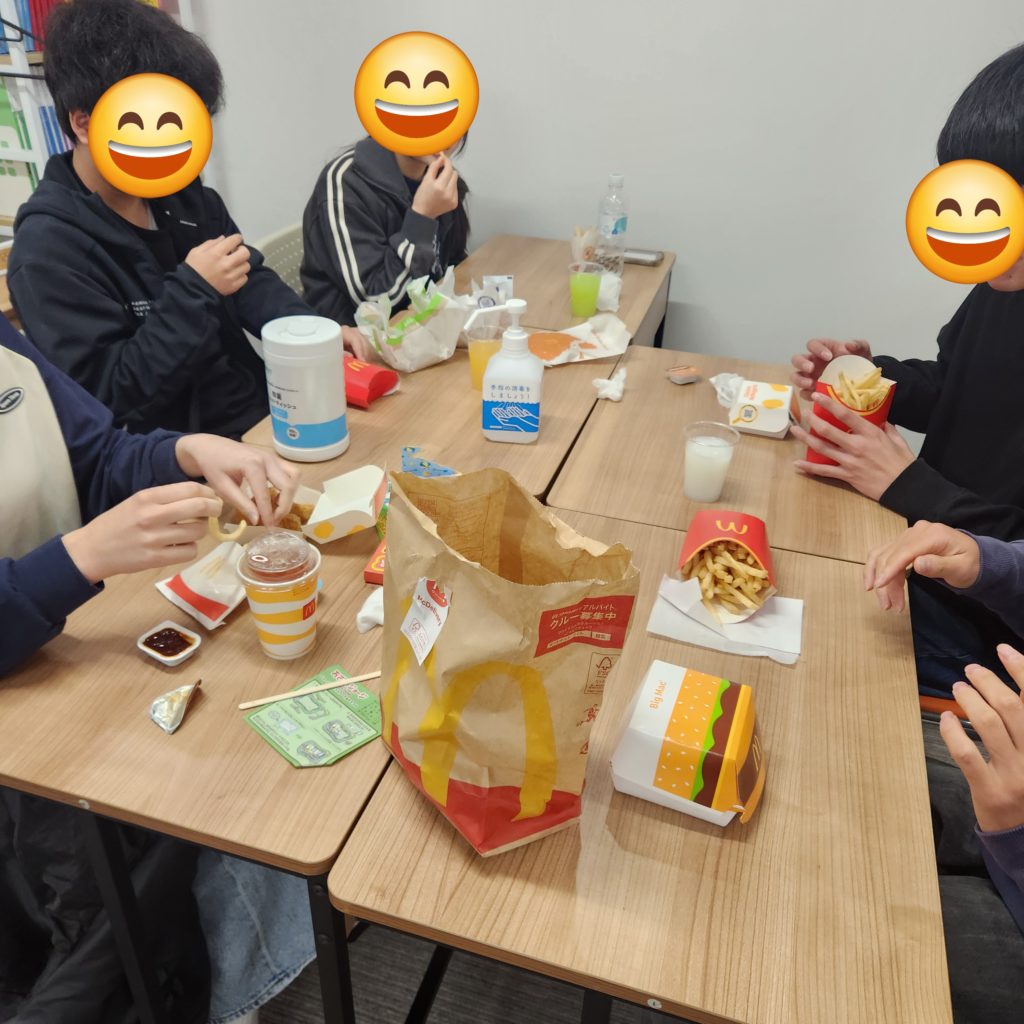 最後はみんなでお昼ご飯。生徒たちの希望でマクドナルドを注文しました。
