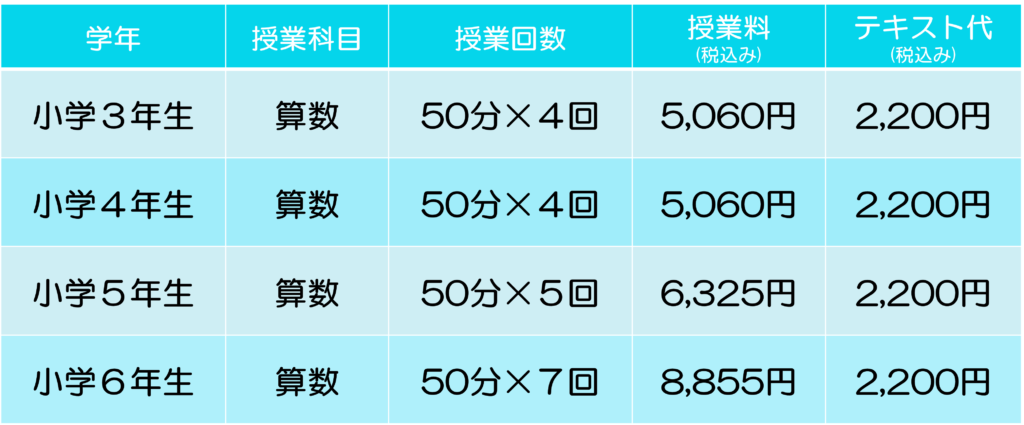 ※上記授業回数は集団授業および自立型学習の合計授業回数となります。