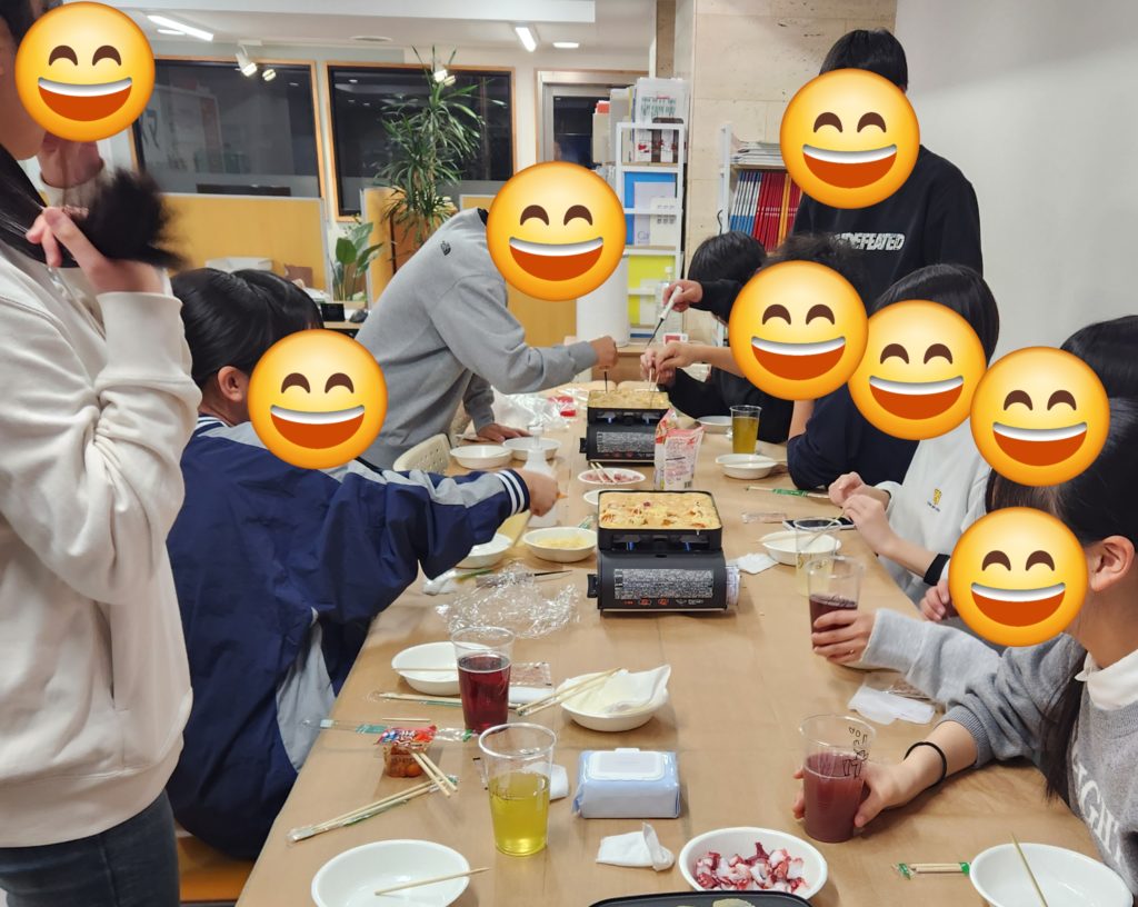 タコパ初体験の生徒もいて(大阪だと一家に一台タコ焼き機があるので信じられないですが…)大変盛り上がりました。途中でお久しぶりな生徒の声を聞くことができてすごくうれしかったです!Aちゃん元気でよかった。