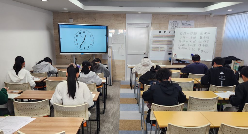 名古屋市北区の名城線平安通駅から徒歩3分、若葉中学校から徒歩30秒にある学習塾E-スマでは、本日は中学3年生が全県模試に取り組んでくれています。