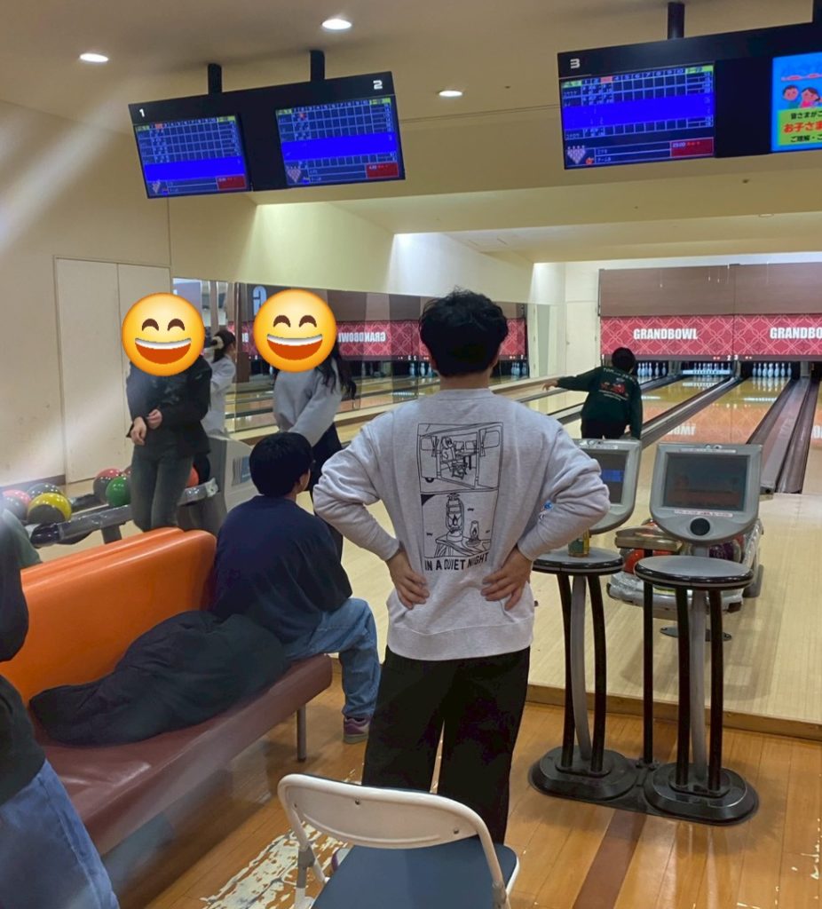 我々もボーリングに夢中になり写真をあまり撮れていませんでした。というわけでなぜかおっさんの背中メインの写真です。