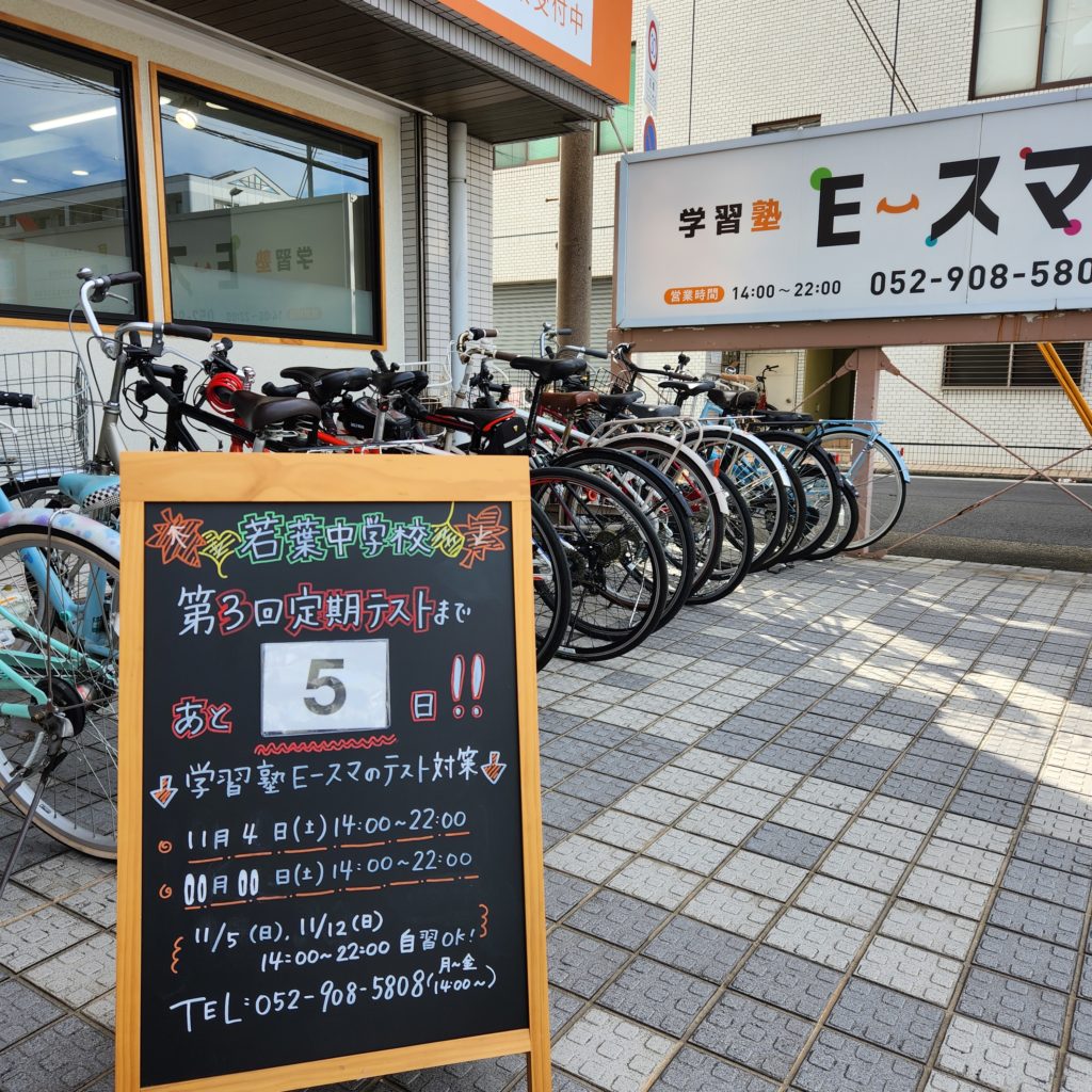 名古屋市北区の名古屋市立若葉中学校から徒歩30秒、名城線平安通駅から徒歩3分にある学習塾E-スマではいよいよ明日からにせまった定期テストに向けてみんな頑張ってくれています。 このボードは塾の前に掲出しているのですが、下校途中の中学生がこれ... -